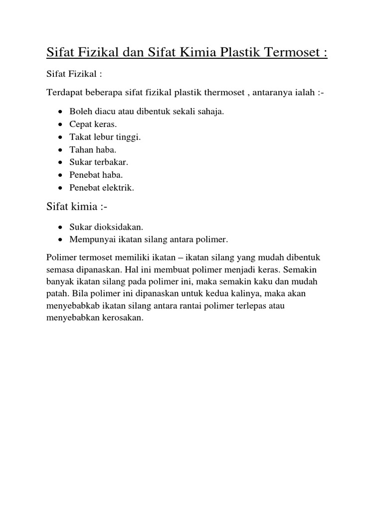 Sifat Fizikal Dan Sifat Kimia Plastik Termoset Bahan Kejuruteraan Awam Pdf